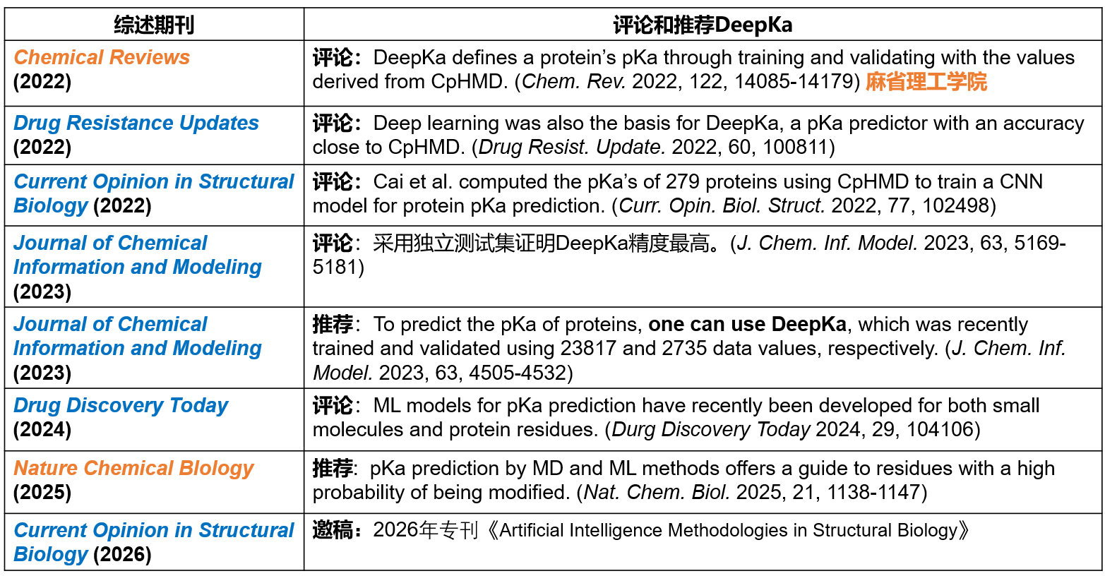 2025.08 恭喜实验室自主研发pKa预测模型DeepKa获多篇综述文章评论和推荐